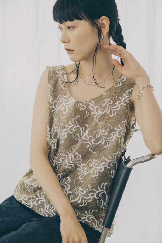 【shimmer 1st item】sleevless lace tops (brown&white) ※予約商品