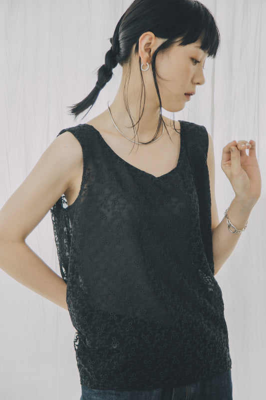 【shimmer 1st item】sleevless lace tops black ※予約商品
