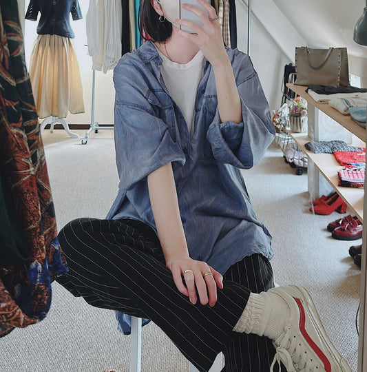 【A PUPIL shimmer別注】georgette blouse (ice gray)