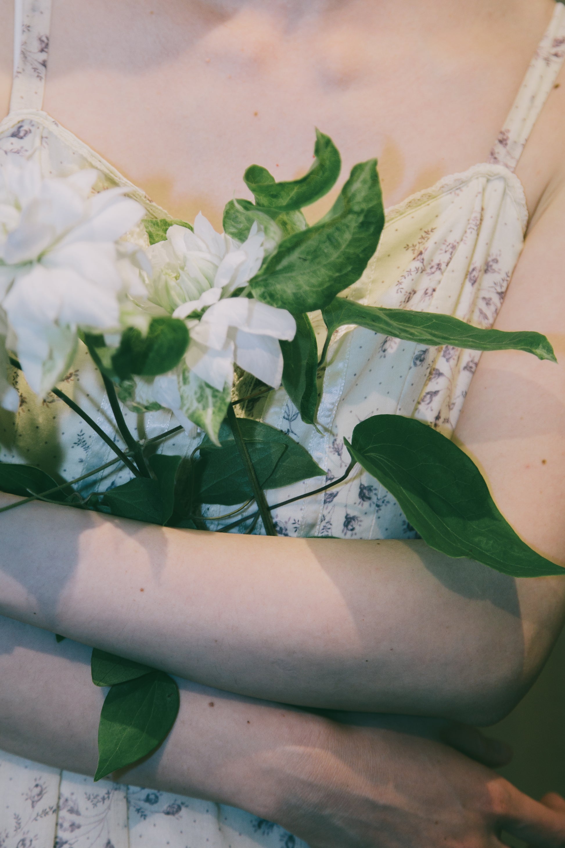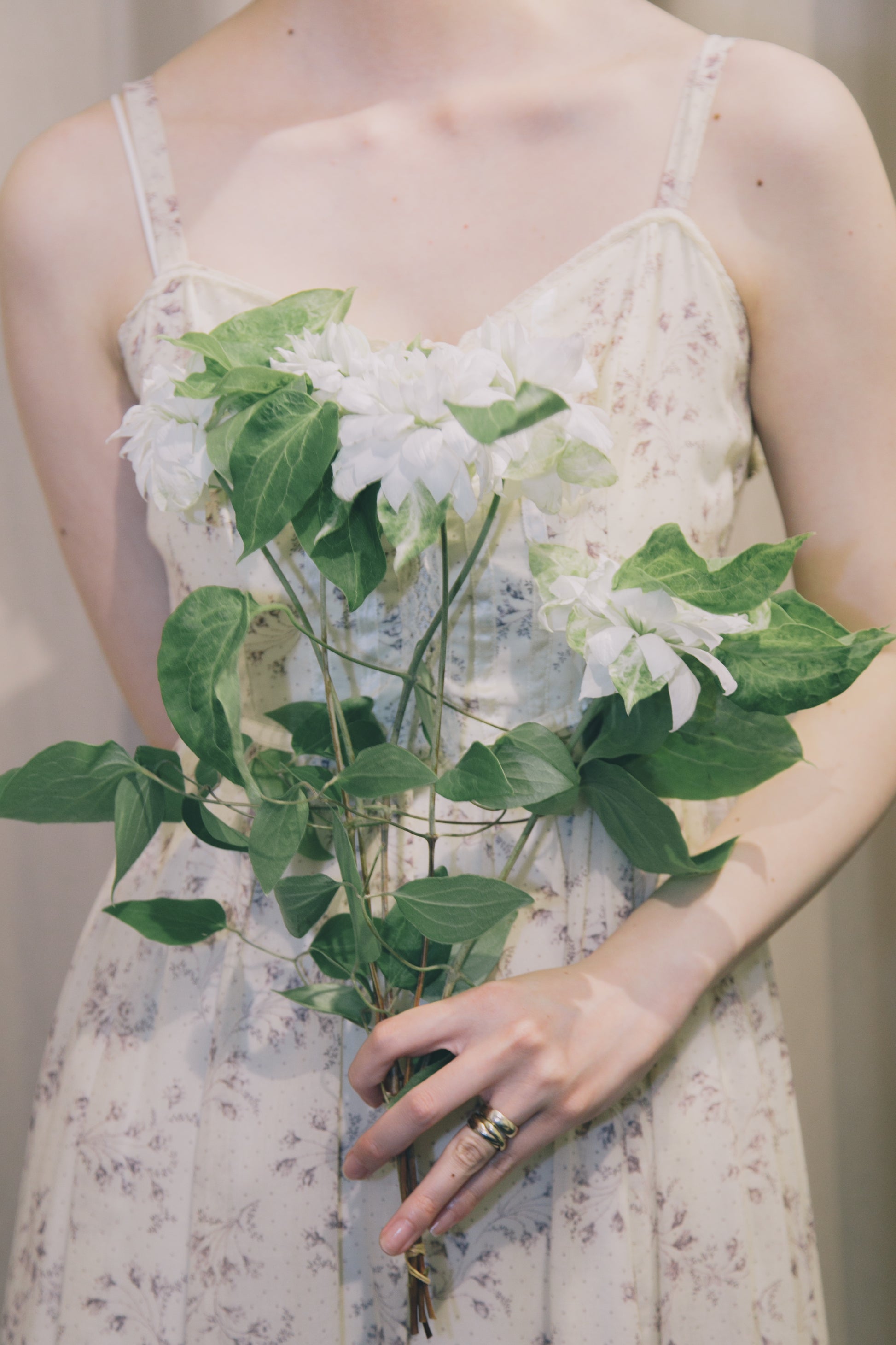 令和に着るならば、インナーにキャミソールや半袖Tシャツを重ねるのもいい。上からジャケットを着るのも素敵。セーターやスウェットをすっぽりかぶれば、ハナビラスカートに。